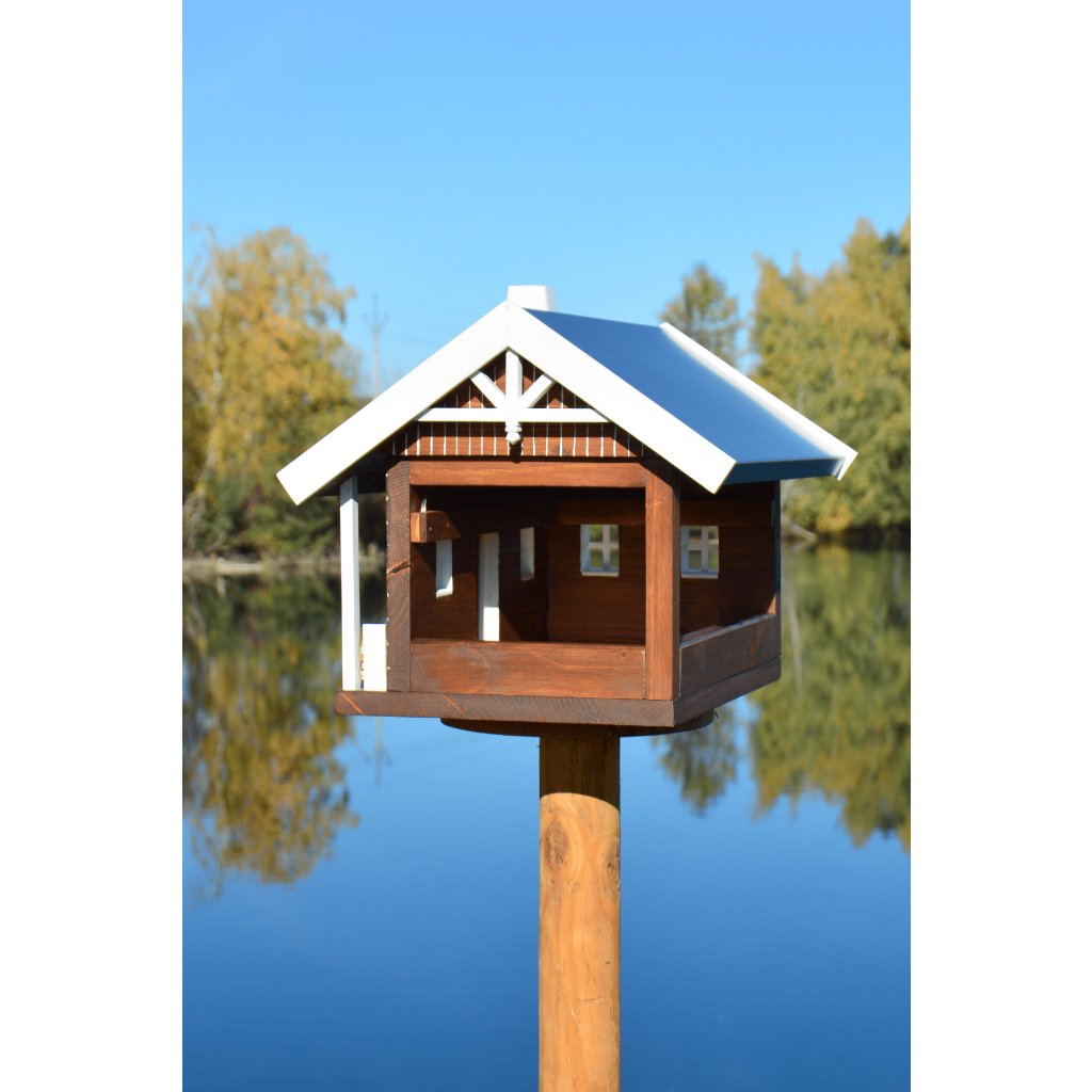 Dřevěné krmítko pro ptáky se vzhledem roubenky. Vyrobeno s láskou a pečlivostí v České Republice.